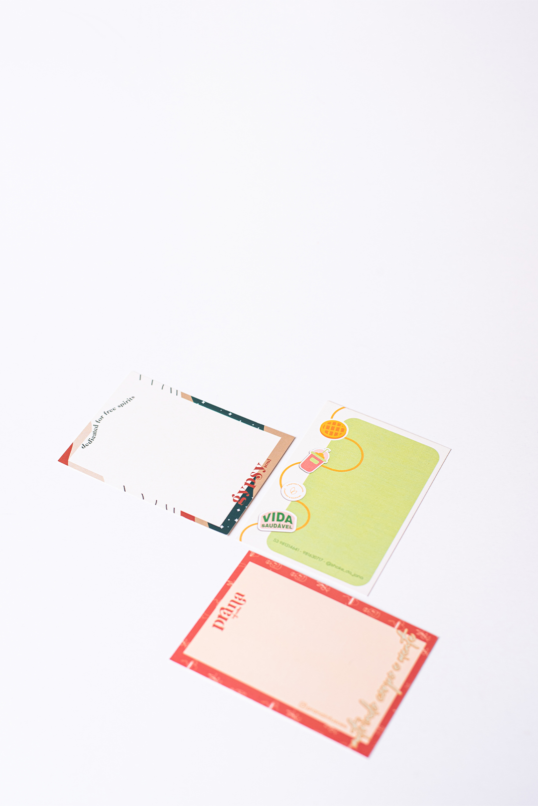 Os Cartões Mensagem são ideais para transmitir sua comunicação de forma elegante e personalizada. Produzidos em cartão 300g com impressão colorida frente e verso, podem ser feitos em diferentes tamanhos (A7, 10x10cm, A6, A5 e 10x21cm) para atender às suas necessidades. Sua arte é 100% personalizada com a identidade visual da sua marca, sem custo adicional.