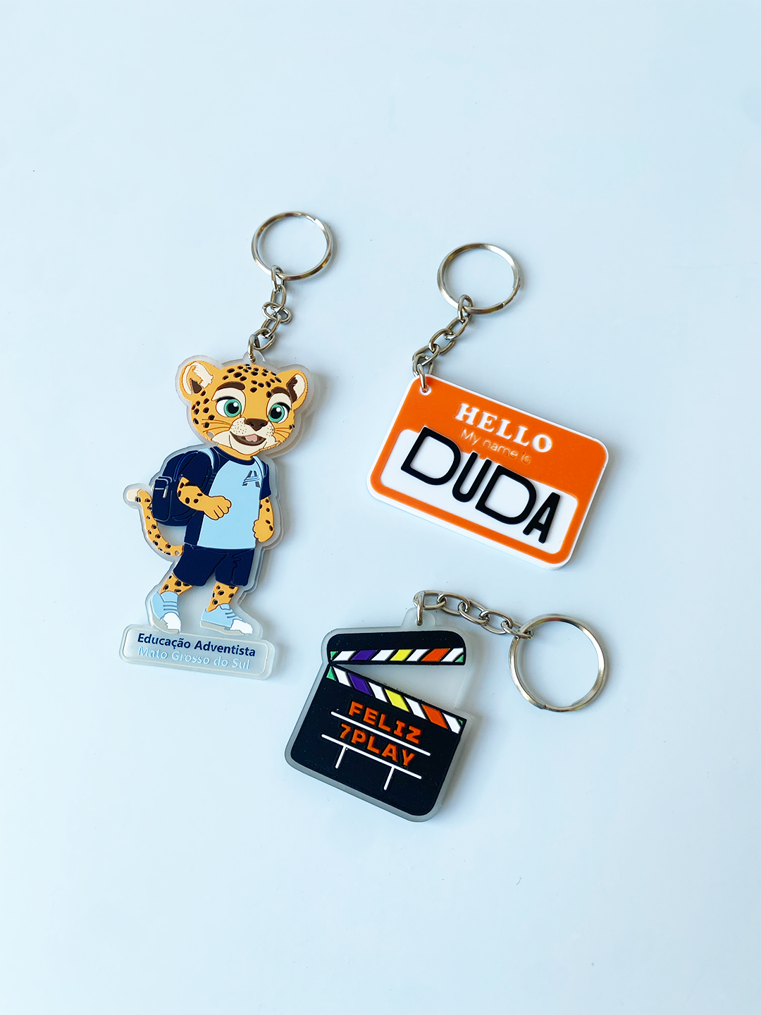 Chaveiros emborrachados personalizados até 6×6 cm e até 3 cores. Brinde resistente, detalhado e com arte totalmente personalizada sem custo adicional.